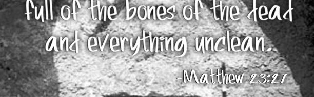 You shut the door of the Kingdom of Heaven in people’s faces. You yourselves do not enter, nor will you let those enter who are trying to. You travel over land and sea to win a single convert, and when you have succeeded, you make them twice as much a child of hell as you are. You give a tenth of your spices—mint, dill and cumin. But you have neglected the more important matters of the law—justice, mercy and faithfulness. You should have practiced the latter, without neglecting the former. You blind guides! You strain out a gnat but swallow a camel. You clean the outside of the cup and dish, but inside they are full of greed and self-indulgence. Blind Pharisee! First clean the inside of the cup and dish, and then the outside also will be clean. You are like whitewashed tombs, which look beautiful on the outside but on the inside are full of the bones of the dead and everything unclean. In the same way, on the outside you appear to people as righteous but on the inside you are full of hypocrisy and wickedness.You build tombs for the prophets and decorate the graves of the righteous. (Excerpts from Matthew 23: 13, 15, 23-29)